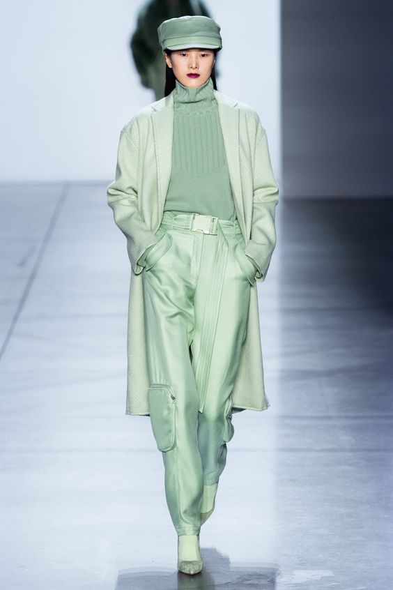 Мятный заслуживает того, чтобы стать частью вашего базового гардероба, хотя бы потому, что он без в проблем впишется и в офисный look, и станет частью вечернего образа.