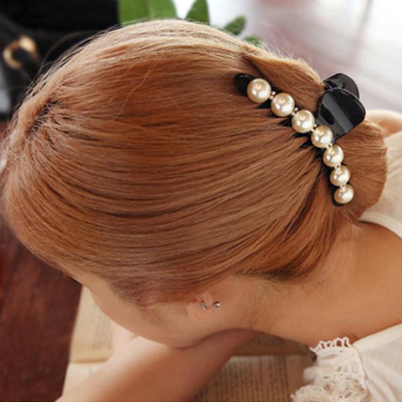Актуальны любые жемчужные заколки, невидимки, бананы, уточки, крабы, гребни, шпильки, резинки, ободки, повязки. То есть в выборе вы не ограничены. И, разумеется, сочетание заколок с серьгами или другими украшениями с жемчугом.